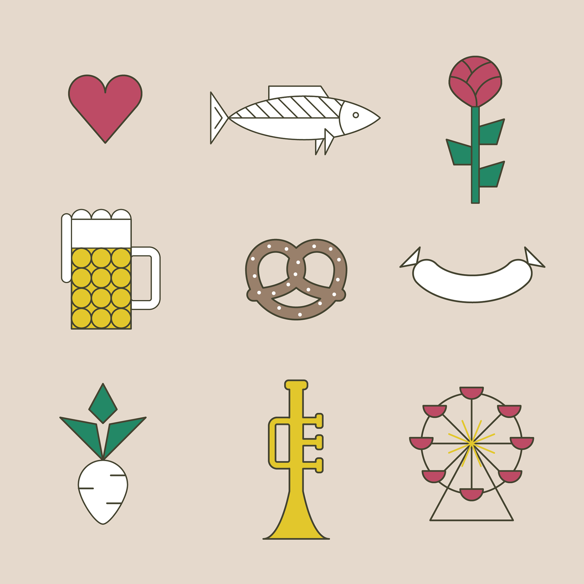Illustrationen für den Oktoberfest-Plakat Wettbewerb 2023. Das Plakat hat es unter die 30 Besten Entwürfe geschafft.